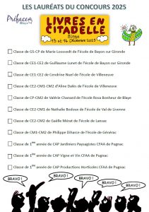Bravo aux classes qui ont participé au Concours de Livres en citadelle 2025. Il fallait réaliser une planche de BD.